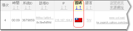 點é¸åœ‹ç¢¼çš„圖示,å¯åšè©²åœ‹ç¢¼çš„篩é¸é¡¯ç¤ºï¼Œä¾‹å¦‚:點é¸äº†ä¸Šåœ–ä¸çš„圖示,將åªé¡¯ç¤ºè©²å°æ™‚的所有資料ä¸ï¼Œåœ‹ç¢¼ç‚º"ä¸è¯æ°‘國"的明細資料。